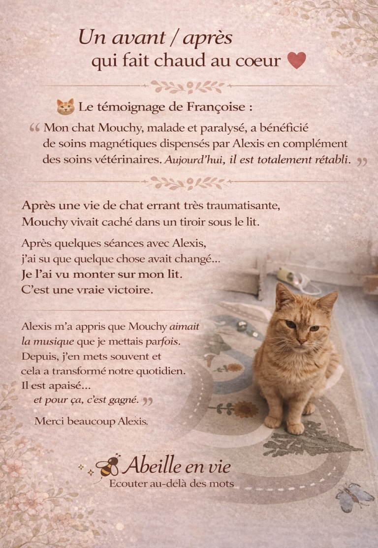 J'aide votre animal en identifiant les origines profondes des maux, troubles, douleurs et les libère graçe au magnétisme.